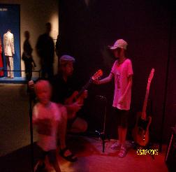 Eric, Kaitlin, and Jayson playing on the mock sound stage. Eric showed Kaitlin how to hold the guitar.
