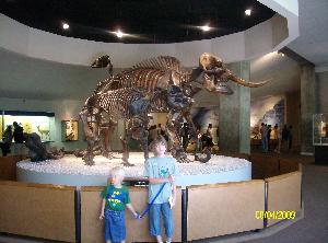 After chasing Jayson through the Natural History Museum at Exposition Park, the movie, Night at the Museum, has taken on a whole new meaning for Kaitlin and I. I believe it is probably Jayson's favorite museum. You could just see his imagination working as we went from one hall of mammals to another with animal noises included. There was one point in witch Kaitlin and I were sure we'd loose him to a herd of African elephants. Though she loves seeing all of the animals, Kaitlin's favorite is the Gems and Minerals exhibit. She likes all of the gems still in the rocks along with all of the crystals much more than she likes the beautifully cut gems. In fact, the priceless red diamond wasn't worth the line as far as she was concerned. Of course the T-rex and triceratops skeletons in the main hall are always a must to see. Along with this, Kaitlin and Jayson were very interested in the new Dino Lab as well. They both watched the scientists work with the fossils for quite a while. With everything they wanted to see, I could not get them to the car in time to make it home for soccer. Though Jayson fussed about missing his sports, both kids fussed more when it came to leaving the museum for the day.